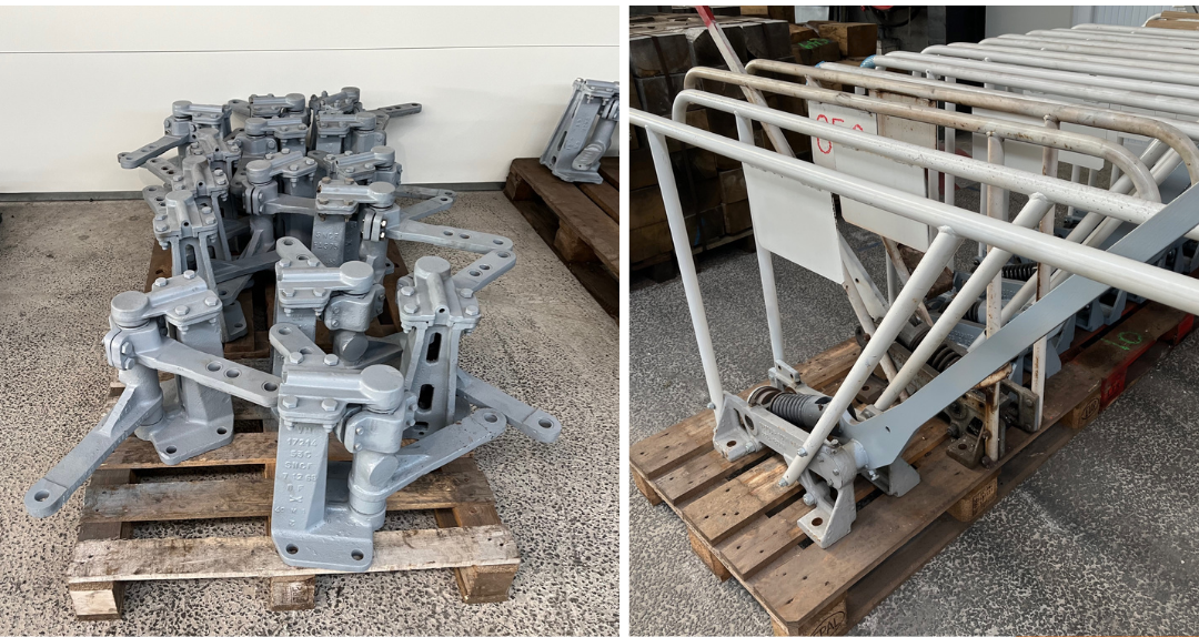 Mais également des fournitures de manœuvre comme des systèmes Saxby, Type I, en chaussée, boîte 4 et les composants associés : tringles, pattes d’attaches, retours d’équerre, …